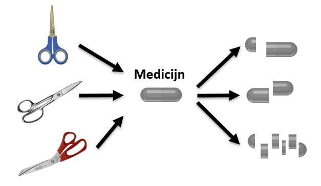 Figuur 1: Sommige enzymen kunnen verschillen bij personen. Ze knippen medicijnen anders.