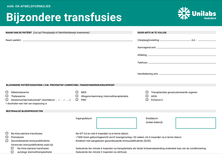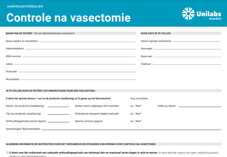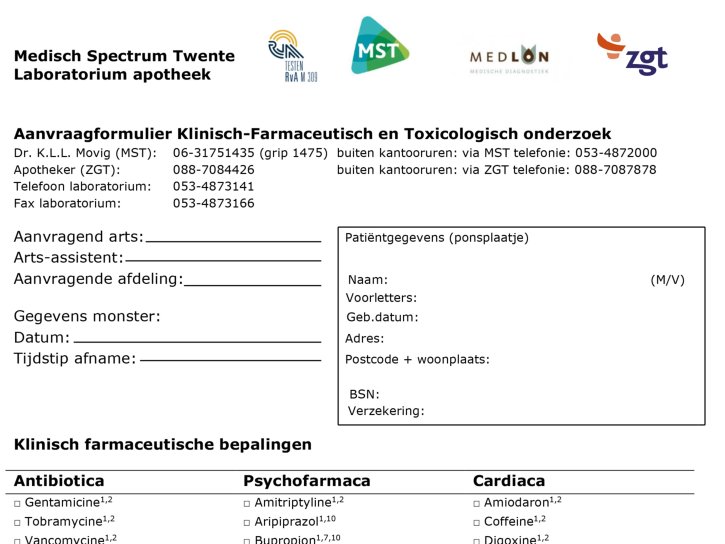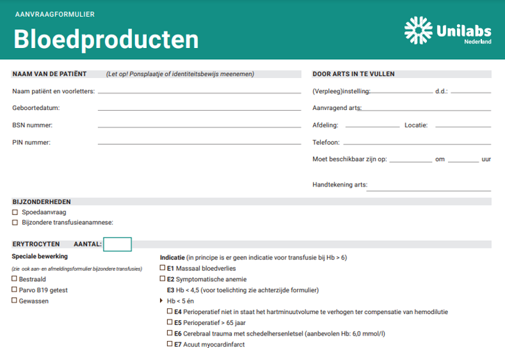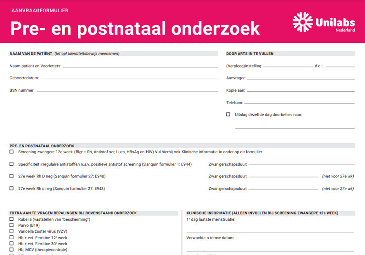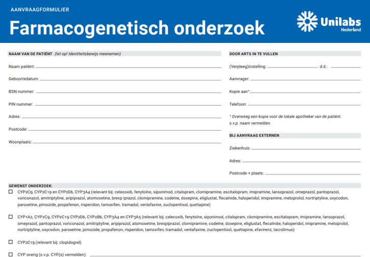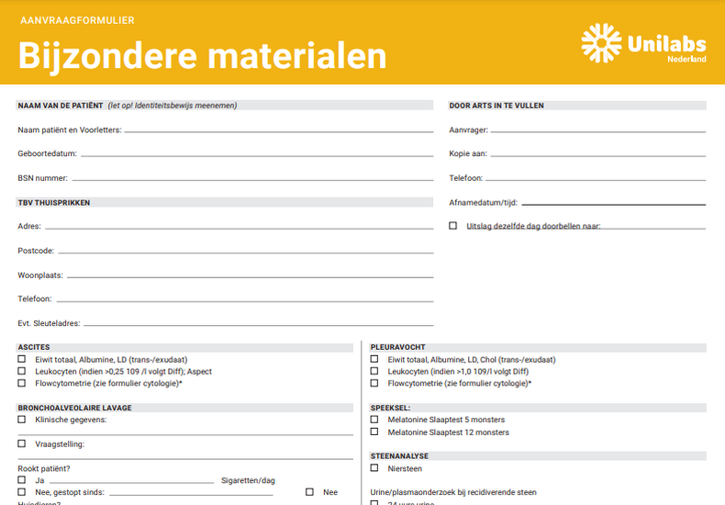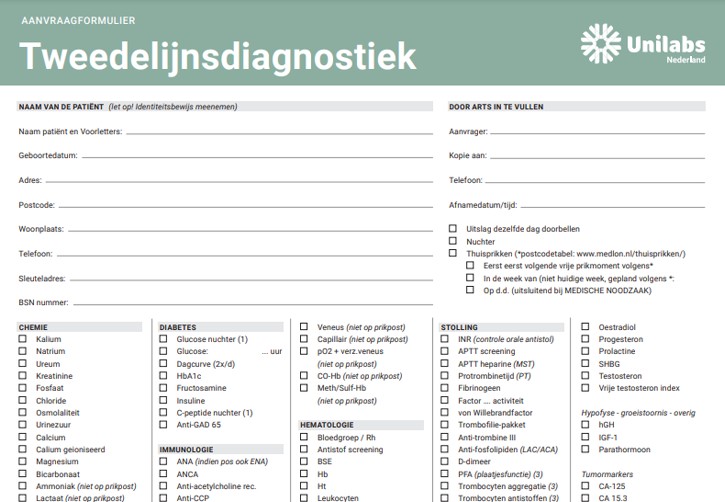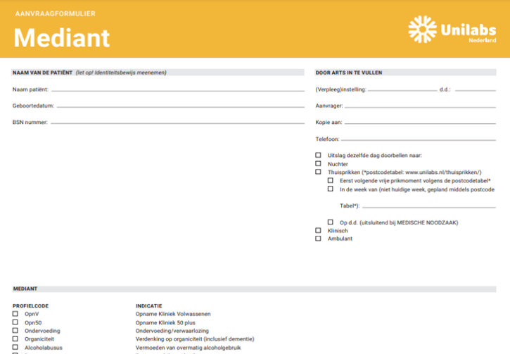 N.B. Alle aanvraagformulieren van Unilabs/Medlon kunt u bestellen in de webshop.