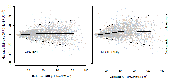 In 2009 werd een nieuwe formule gepubliceerd voor de berekening van de geschatte glomerulaire filtratiesnelheid, de CKD-EPI formule. Deze formule heeft een aantal verbeteringen ten opzichte van de huidige MDRD-formule (Zie ook Figuur 2).